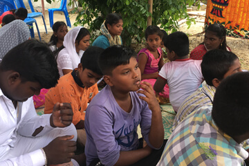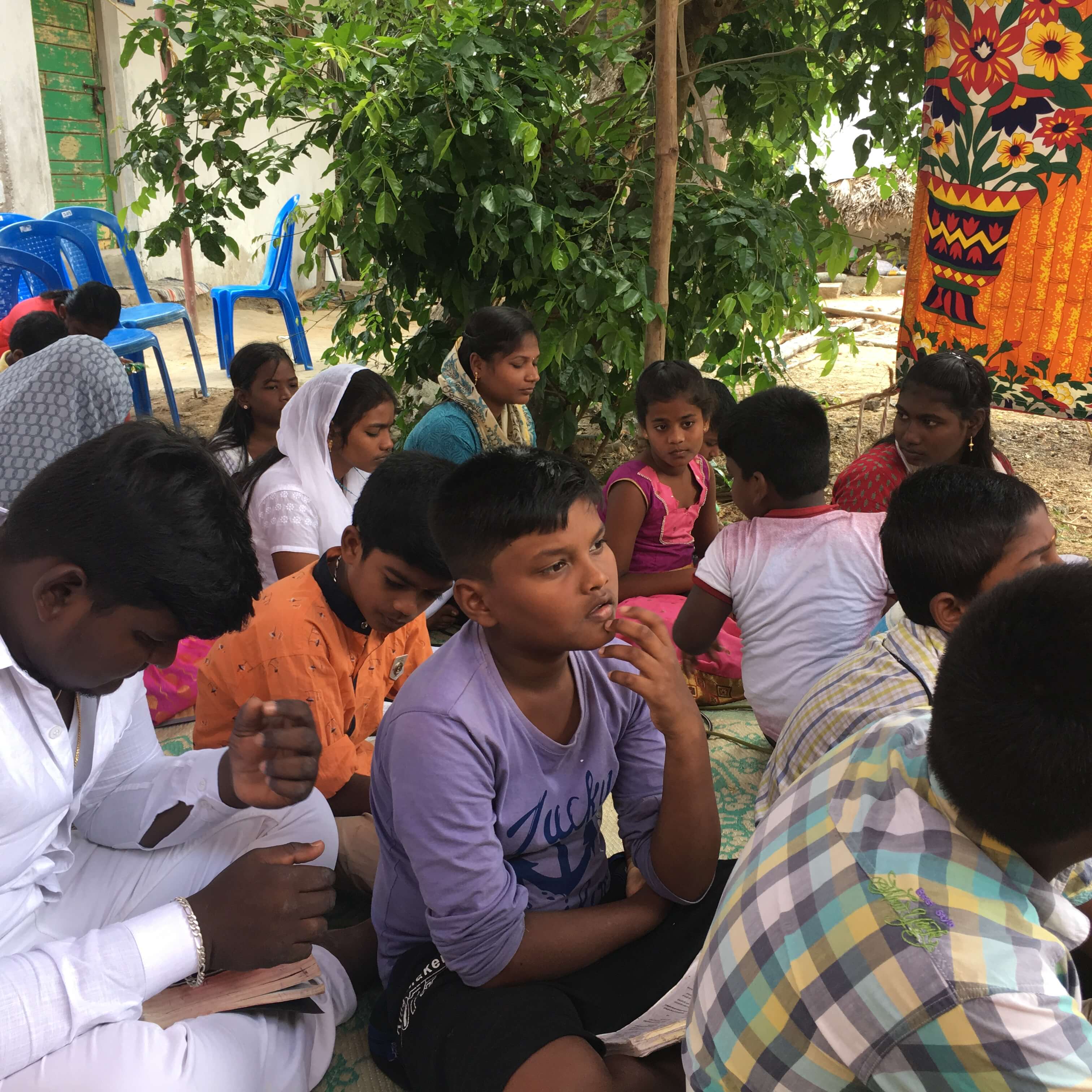 Regular and periodic visits are made to nearby villages. Outreach meetings are arranged with good music, skits and sharing the Gospel. Many hard working every day wagers, illiterates, the less privileged and needy are touched by this ministry and their lives are turned unto God. Special sessions are arranged for people who are bound in blind beliefs and superstitions where prayers for deliverance are made. Free distribution of New Testaments or the Gospel of John booklets are done during these visits. Their personal needs are also met.
